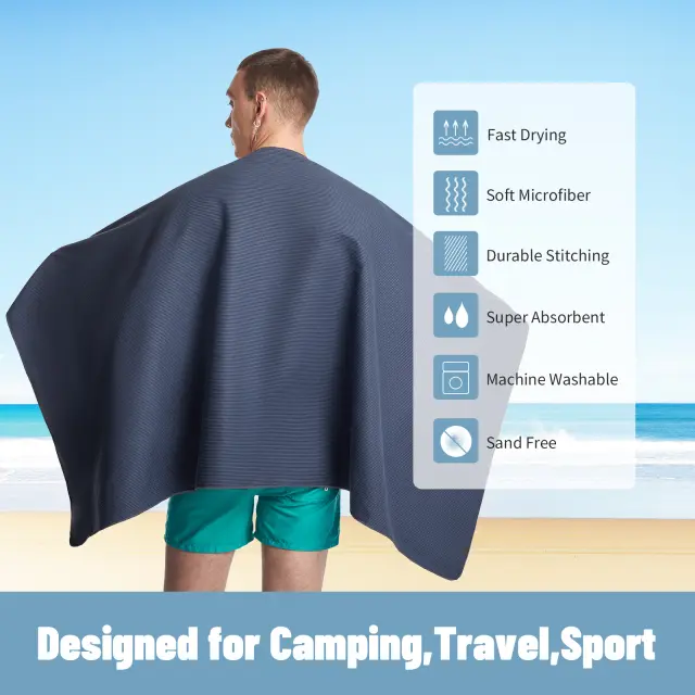 Hitro vpijanje: Ta brisača je zasnovana za hitro vpijanje vode, zahvaljujoč svoji edinstveni mešanici ultra finih vlaken, sestavljenih iz 90 % poliestra in 10 % najlona. To zagotavlja, da se lahko hitro in udobno posušite.