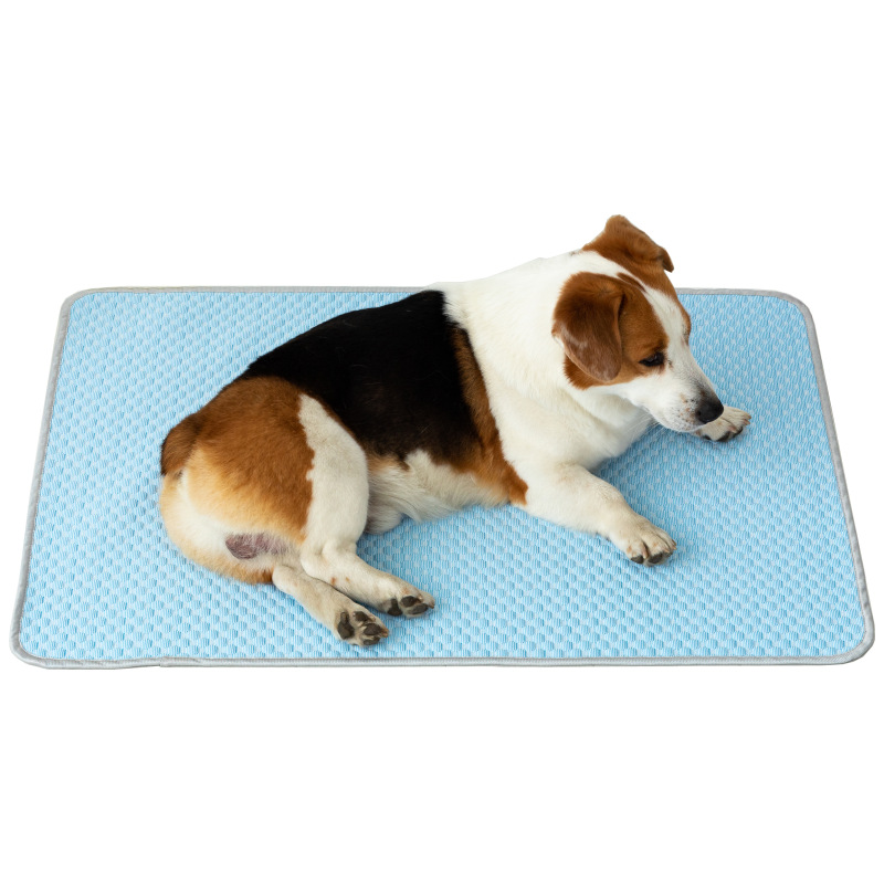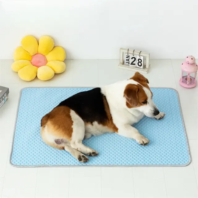 Hlajenje in zračnost: Ta hladilna podloga za hišne ljubljenčke je zasnovana z zračno polnilo iz ledenih zrn, ki učinkovito odvaja toploto in ohranja vašega kosmatega prijatelja hladnega in udobnega v vročih poletnih dneh.