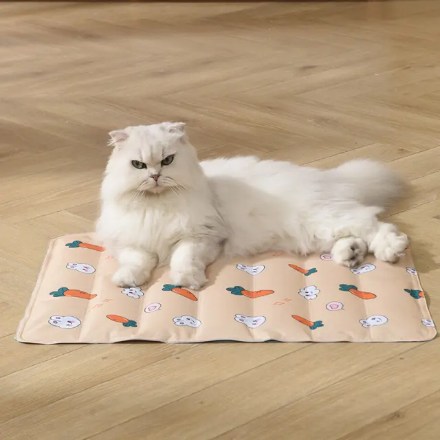Hlajenje in udobje: Ta hladilna podloga za hišne ljubljenčke je napolnjena z visokotehnološkim hladilnim gelom, ki absorbira telesno toploto vašega ljubljenčka in mu tako nudi hladno in udobno površino za počitek v vročih dneh. Pomaga preprečevati pregrevanje in ohranja vašega kosmatega prijatelja svežega.