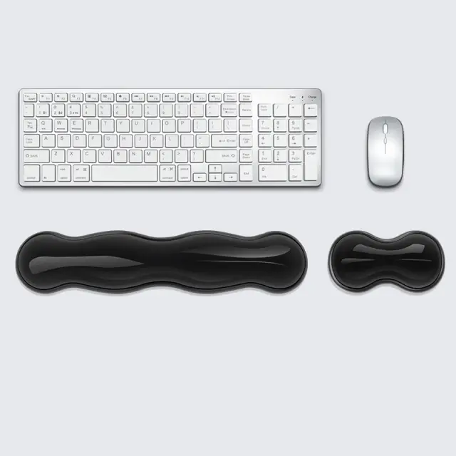 Ergonomska oblika: Izbočena oblika opore za zapestje zagotavlja optimalno oporo za vaša zapestja, kar spodbuja nevtralen položaj rok in zmanjšuje obremenitev in utrujenost. Uživajte v urah udobnega tipkanja in uporabe miške z manj nelagodja.