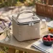 V hladilni torbi Be CooL s prostornino 4,5 litra, lahko ohladite sadje, pijačo in prigrizke, pa tudi kozmetiko in zdravila. Lahko se uporablja za več priložnost, kot so nakupovanje, kampiranje, prosti čas, izleti, telovadnica itd. Izdelana je iz PU-ja in visokokakovostnega izolacijskega materiala EPE. Material torbice spominja na usnje, zato deluje elegantno in prefinjeno ter je primeren tako za vsakodnevno uporabo kot tudi za posebne priložnosti. Torba je trpežna, odporna na trganje in enostavna za uporabo ter čiščenje. Krem torba ima ročaj za enostavno prenašanje. Zapira s se pomočjo dvojne zadrge. Znotraj ima manjši mrežast žepek, ki omogoča shranjevanje denarja, telefona, ključev, dokumentov in ostalih drobnarij. Ni primerna za pranje v pralnem stroju. Visokokakovostno termoplastično smolo je mogoče reciklirati. Notranji material je brez škodljivih mehčalcev.