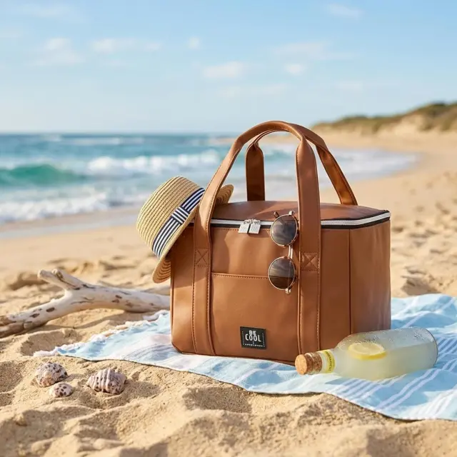 V hladilni torbi Be CooL s prostornino 10,5 litra, lahko ohladite sadje, pijačo in prigrizke. Lahko se uporablja za več priložnost, kot so nakupovanje, kampiranje, prosti čas, izleti, telovadnica itd. Izdelana je iz PU-ja in visokokakovostnega izolacijskega materiala EPE. Material torbice spominja na usnje, zato deluje elegantno in prefinjeno ter je primeren tako za vsakodnevno uporabo kot tudi za posebne priložnosti. Torba je trpežna, odporna na trganje in enostavna za uporabo ter čiščenje. Opečnato rjava torba ima ročaj za enostavno prenašanje. Zapira s se pomočjo dvojne zadrge. Ni primerna za pranje v pralnem stroju. Visokokakovostno termoplastično smolo je mogoče reciklirati. Notranji material je brez škodljivih mehčalcev.