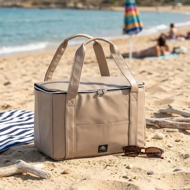 V hladilni torbi Be CooL s prostornino 28 litra, lahko ohladite sadje, pijačo in prigrizke. Lahko se uporablja za več priložnost, kot so nakupovanje, kampiranje, prosti čas, izleti, telovadnica itd. Izdelana je iz PU-ja in visokokakovostnega izolacijskega materiala EPE. Material torbice spominja na usnje, zato deluje elegantno in prefinjeno ter je primeren tako za vsakodnevno uporabo kot tudi za posebne priložnosti. Torba je trpežna, odporna na trganje in enostavna za uporabo ter čiščenje. Kremno torba ima ročaj za enostavno prenašanje. Zapira s se pomočjo dvojne zadrge. Ni primerna za pranje v pralnem stroju.