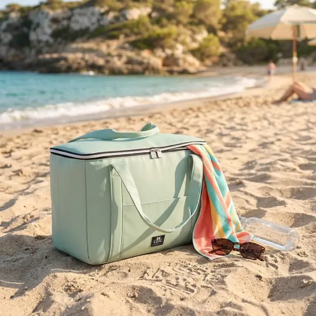 V hladilni torbi Be CooL s prostornino 28 litra, lahko ohladite sadje, pijačo in prigrizke. Lahko se uporablja za več priložnost, kot so nakupovanje, kampiranje, prosti čas, izleti, telovadnica itd. Izdelana je iz PU-ja in visokokakovostnega izolacijskega materiala EPE. Material torbice spominja na usnje, zato deluje elegantno in prefinjeno ter je primeren tako za vsakodnevno uporabo kot tudi za posebne priložnosti. Zelena (mint) torba ima ročaj za enostavno prenašanje. Zapira s se pomočjo dvojne zadrge. Ni primerna za pranje v pralnem stroju I Dimenzije: 44 x 22 x 29 cm.