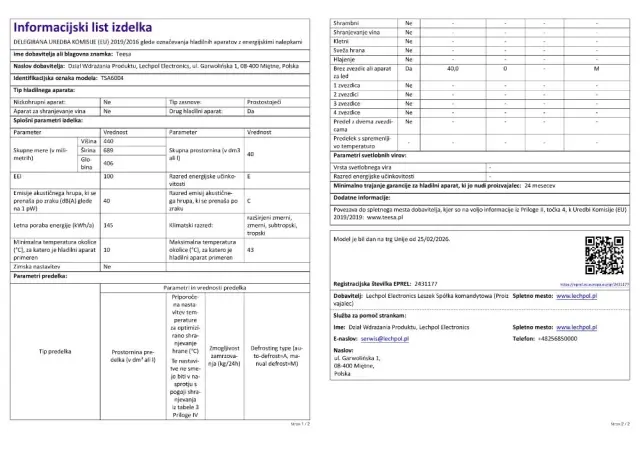 - Tehnični podatki: