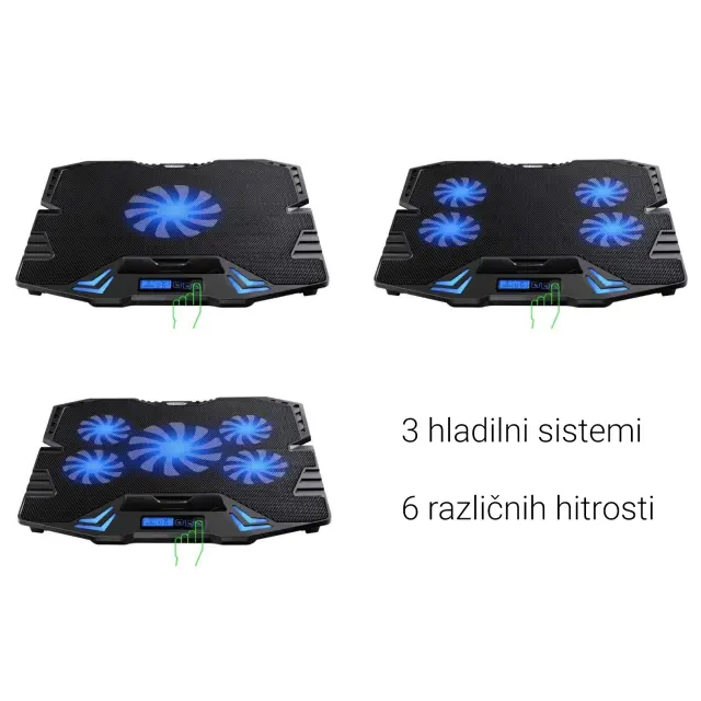 EWENT EW1259 5x tih ventilator 2x USB hladilno stojalo za prenosnik do 43,9 cm (17,3")