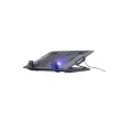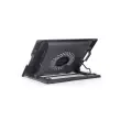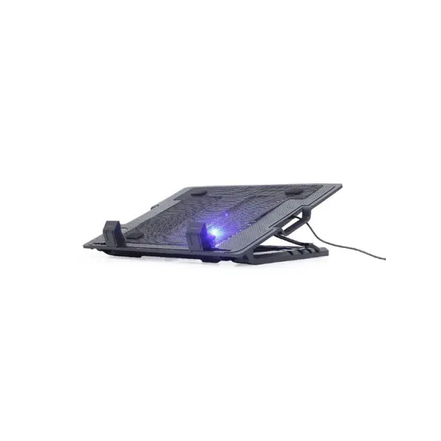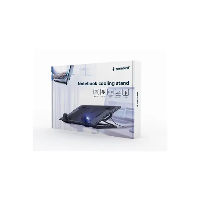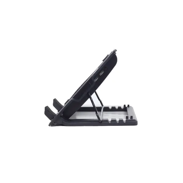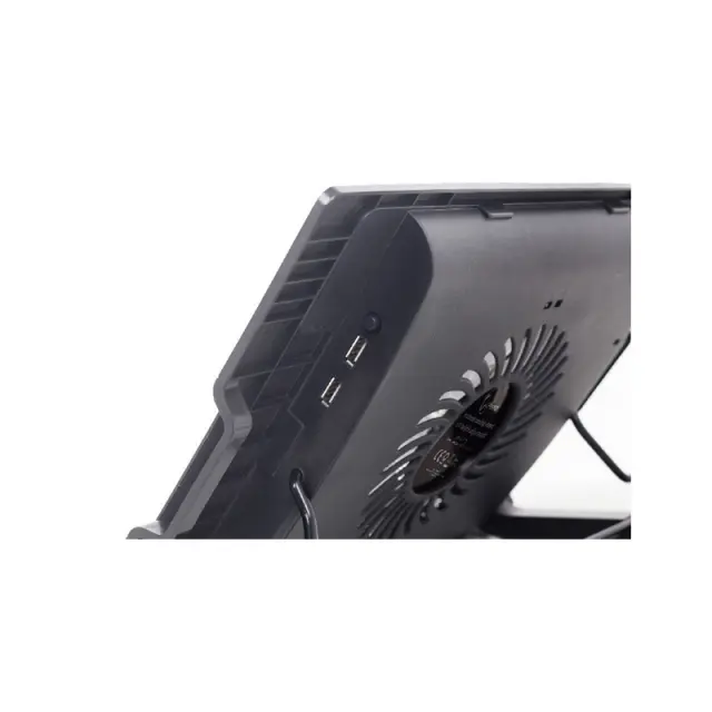 Hladilno stojalo za prenosnike (največ 17 ") z nastavitvijo višino. Ergonomska oblika, nastavljiva do 45 stopinj za optimalen kot gledanja. Omogoča pozicioniranje zaslona v višini oči, da zmanjša napetost vratu. Tihi 150 mm hladilni ventilator preprečuje pregrevanje prenosnika. S praktičnimi dodatnimi USB in stikalom za vklop/izklop ventilatorja. LED osvetlitev v hladilnem ventilatorju.