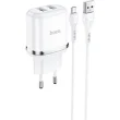HOCO pametni hišni polnilec N4 12W z 2,4A z 2x USB vtičem in s polnilnim kablom Micro USB bel