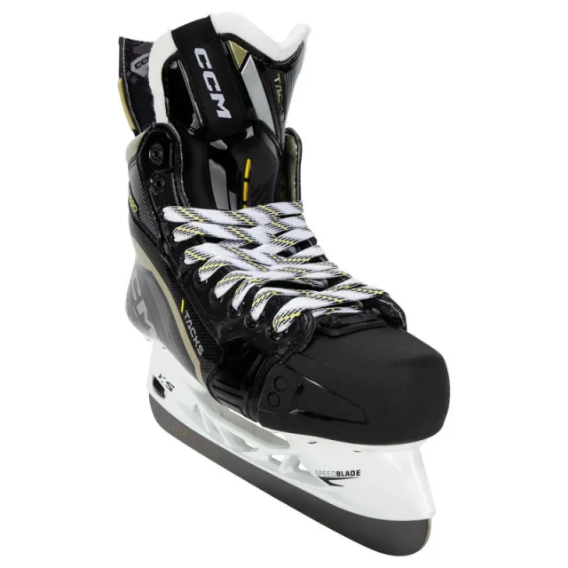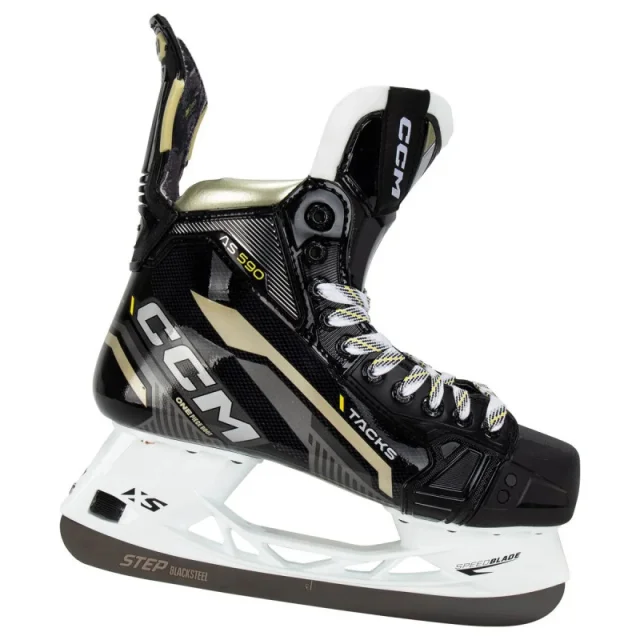Novo za leto 2022, CCM Hockey prenavlja svoje vedno priljubljene drsalke Tacks za sodobne drsalce. Drsalke za hokej na ledu CCM Tacks AS 590 Senior so izdelane za moč in moč, hkrati pa so izjemno lahke. Ta drsalka zagotavlja vrhunski prenos energije in se tesneje prilega, da podpira najintenzivnejše drsalne korake. Začenši s prileganjem, imajo drsalke Tacks AS 590 anatomsko prileganje, ki je blizu stopalu, ki so ga igralci navajeni pri liniji Tacks. To obliko prilegajoče se 360-stopinjsko prileganje okoli prednjega dela stopala, pete in gležnja pomaga odpraviti negativni prostor v čevljah, kar omogoča učinkovitejši prenos energije, kar pomeni izboljšano hitrost in okretnost. Drsalke Tacks AS 590 ne glede na škorenj uporabljajo tehnologijo enodelnih škornjev CCM. Ta škorenj bo pomagal igralcem pri bolj neposrednem prenosu energije in tesnejšem prileganju za najmočnejše možne korake. Tacks AS 590 dajejo eksplozivnost že od odriva. Ta enodelni škorenj je narejen iz RFM kompozitnega karbona z lahkim jedrom. Ta lahki kompozitni material kalibra NHL bo imel ojačano jedro za dodatno vzdržljivost. Togost bo 180, ki je lahka in jo je mogoče termoformirati za vrhunsko zmogljivost drsanja. Na sprednji strani drsalke AS 590 je CCM-jev zamenljiv asimetrični tritech jezik s peno EVA. Ta večplastni 7 mm jezik bo imel izboljšano zaščito pred ugrizi čipke in vložek iz EVA pene za odlično zaščito. Notranjost drsalk Tacks AS 590 je polna funkcij za udobje in vzdržljivost. Podloga TotalDri Pro s Polygienom je elitni material za odvajanje vlage, ki pomaga odvajati vlago stran od telesa, tako da so stopala suha in lahka. Notranja spominska pena z več gostotami v predelih gležnjev se anatomsko ovije okoli igralčevih gležnjev in jih tako udobno drži na mestu. Na zadnji strani drsalke je ščitnik tetive Powerflex, ki zagotavlja izboljšan obseg gibanja za polnejše korake in večjo moč drsanja. Nazadnje, za podnožje CCM uporablja njihovo podnožje Ortholite Ultralite. To bo nudilo vrhunsko udobje in podporo z uporabo recikliranih pen EVA. Če se premaknemo na spodnjo polovico drsalk Tacks AS 590, CCM uporablja njihovo priljubljeno držalo SpeedBlade XS. Ta držala so bila razvita kot hiter in enostaven način za igralce, da zamenjajo tekače na letenju, hkrati pa zagotavljajo dosleden občutek vsakič. Držala uporabljajo mehanizem s pozitivnim zaklepom, ki tesno pritrdi tekače na držalo in tako prepreči, da bi se rezilo zrahljalo med igro. Letošnja novost pri drsalkah CCM AS 590 je izbira jekla. To omogoča igralcu, da prilagodi svoje drsalke z možnostmi STEP Steel po vaši izbiri. Če ste drsalec na visoki ravni in iščete drsalko, ki vam omogoča bolj neposreden prenos energije in odziv ter vam omogoča, da prilagodite svojo raven zmogljivosti, ne iščite dlje kot drsalke za hokej na ledu CCM Tacks AS 590 Senior.