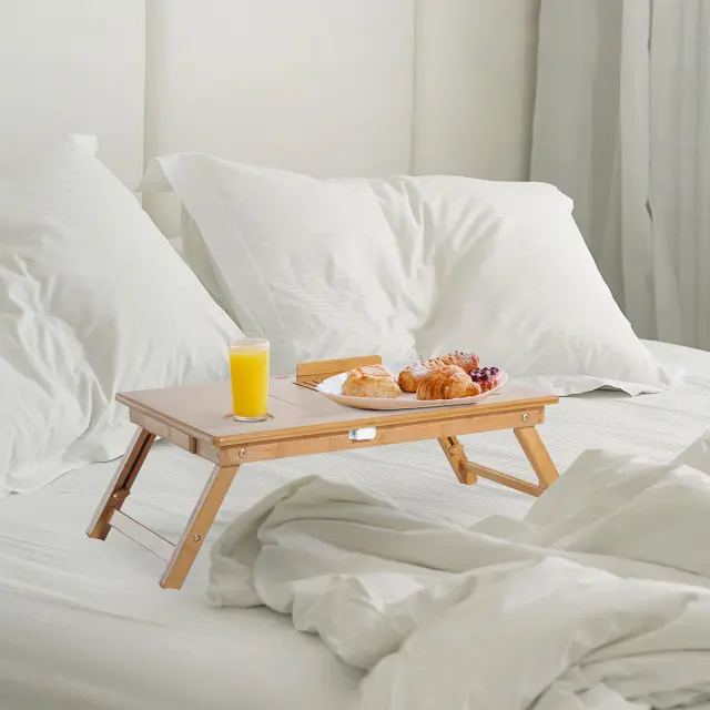 Struktura, narejena iz zelo lahkega bambusa, a tudi robustna in trpežna, ima luknje za spodbujanje hlajenja prenosnega računalnika Prevleka daje mizi visoko stopnjo sijaja Barva: naravna - bambusova couture: 1,2 cm - največja obremenitev: 5kg Material: bambus - velikost: 55 × 35 × 22-30 cm Ta tabela vam omogoča udobno uporabo prenosnika na katerem koli mestu in vam omogoča znižanje temperature računalnika zahvaljujoč luknjam na tleh. Praktična in večnamenska, ponuja dovolj prostora za prenosnik, miško, uporabna pa je tudi kot pladenj za zajtrk! • struktura iz zelo lahkega bambusa, a tudi robustna in trpežna;