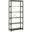 HOMCOM Knjižnica v vintage industrijskem slogu s 6 lesenimi in črnimi kovinskimi policami, 80x30x180cm