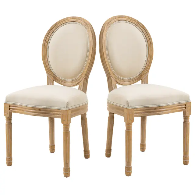 HOMCOM Komplet dveh oblazinjenih stolov za dnevno sobo v retro slogu iz lesa in tkanine z učinkom lanu bela kremna 49x56x96cm