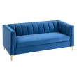 HOMCOM Poceni 3-sedežna žametna zofa z oblazinjenjem in zlatimi nogami, zofa z nasloni za roke in odstranljivo prevleko za blazino, modra