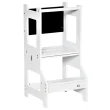 HOMCOM Snemljive Montessori stopnice 2 v 1 iz MDF, lesen otroški učni stolp, 3-6 let, s stolčkom, tablo, ročajem in ograjo, priložene, bela