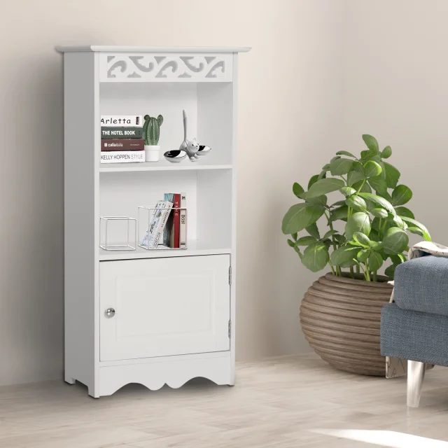 HOMCOM Talna omarica in omarica z 2 policama z vrati MDF Bela Kopalnica MDF 40L x 23P x 80A cm Bela
