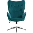 HOMCOM žametni fotelj za dnevno sobo in pisarno, oblazinjen vrtljiv fotelj za sprostitev z nasloni za roke in nastavljivo višino, modri
