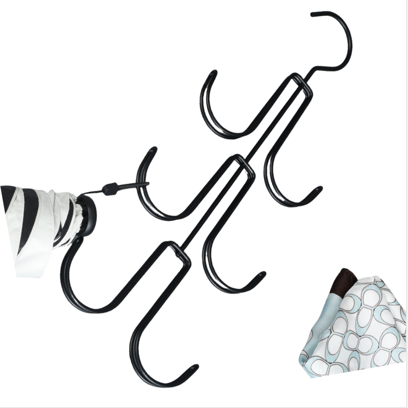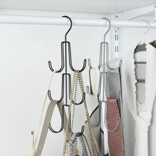 Všestranné úložiště: Tento stojan je ideální pro ukládání různých předmětů, včetně kabelek, opasků, šátků, klobouků a dalších. Jeho několik háčků poskytuje dostatek prostoru pro uložení vašich doplňků a jejich snadný přístup.
