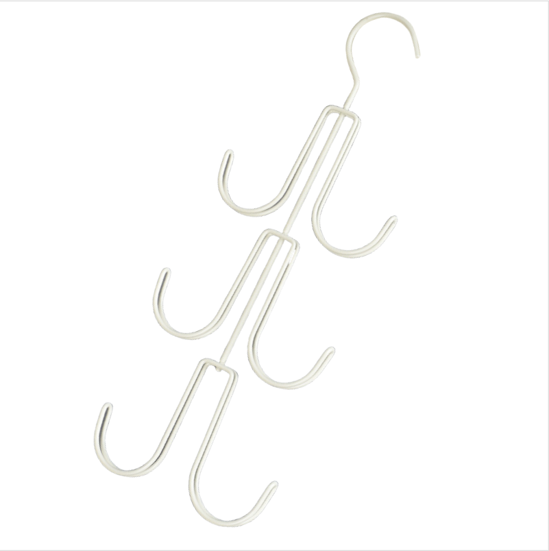 Všestranné úložiště: Tento stojan je ideální pro ukládání různých předmětů, včetně kabelek, opasků, šátků, klobouků a dalších. Jeho několik háčků poskytuje dostatek prostoru pro uložení vašich doplňků a jejich snadný přístup.
