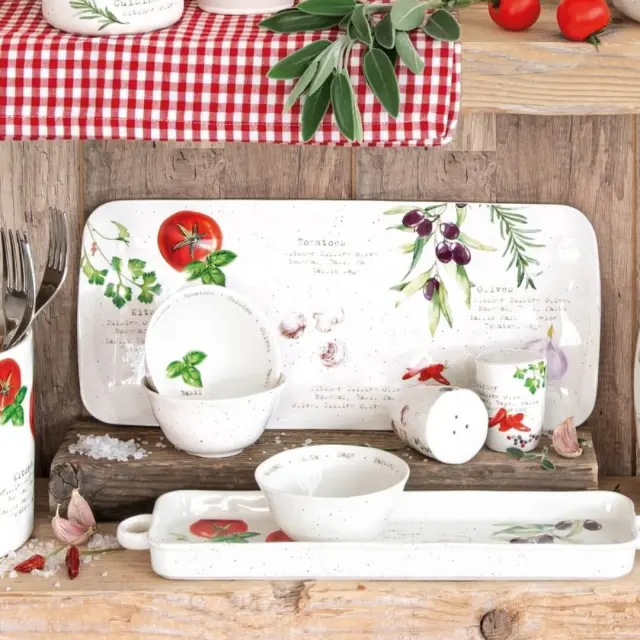 Servirni krožnik iz porcelana pravokotne oblike bo lepo popestril vašo mizo in navdušil goste. Pakiran v prikupni darilni škatli, zato lahko z njim razveselite tudi vaše najdražje ob kakšni posebni priložnosti. Izdelki blagovne znamke Easy Life iz linije Home&Kitchen z izrazitim rustikalnim stilom in slikovitim prikazom dišavnic, začimb in zelišč ustvarijo prijeten občutek domačnosti. Poglejte še ostale izdelke iz linije Home&Kitchen.