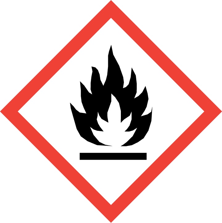 H225 Lahko vnetljiva tekočina in hlapi. H317 Lahko povzroči alergijski odziv kože. H319 Povzroča hudo draženje oči. H412 Škodljivo za vodne organizme, z dolgotrajnimi učinki. P101 Če je potreben zdravniški nasvet, mora biti na voljo posoda ali etiketa proizvoda. P102 Hraniti zunaj dosega otrok. P210 Hraniti ločeno od vročine, vročih površin, isker, odprtega ognja in drugih virov vžiga. Kajenje prepovedano. P302 + P352 PRI STIKU S KOŽO: umiti z veliko mila in vode. P403 + P235 Hraniti na dobro prezračevanem mestu. Hraniti na hladnem. P501 Odstraniti vsebino / posodo v skladu z nacionalnimi predpisi.