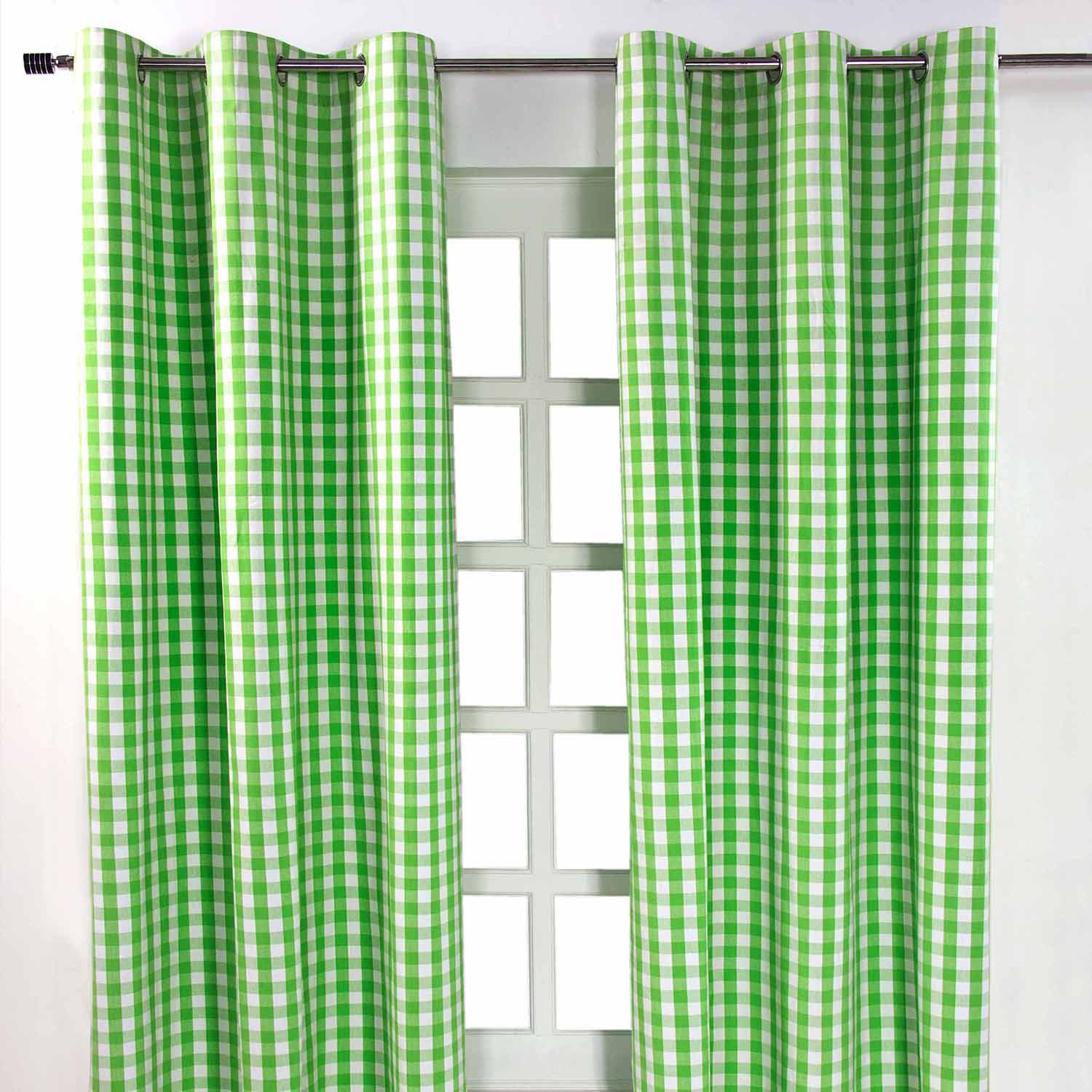 Homescapes Bombažne zelene blokovske zavese Gingham Eyelet, 117x137 cm