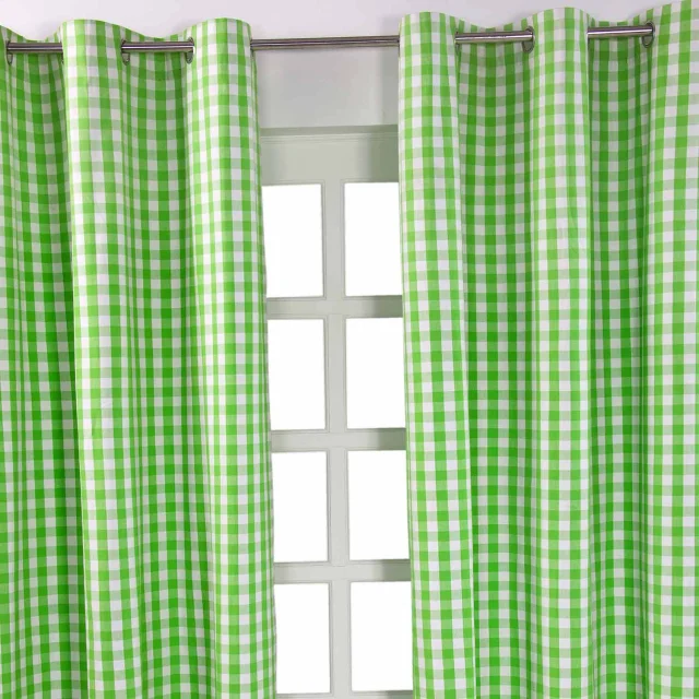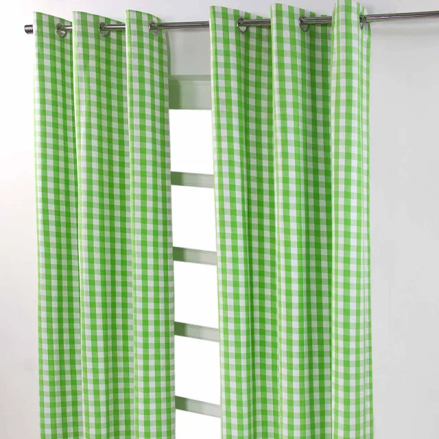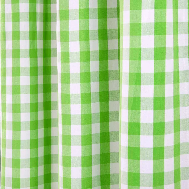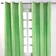 Homescapes Bombažne zelene blokovsko kvačkane ginghamske zavese z ušesi 137x228 cm