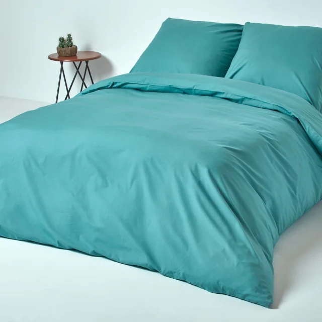 Homescapes Komplet Prevlek za Odejo iz Egipčanskega Bombaža v Modrozelena Barvi s Kompletom 200 Niti, 155x200 cm