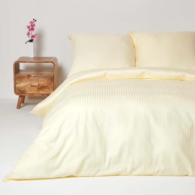 Homescapes Komplet Prevlek za Odejo iz Pastelno Rumeno Barvane Egipčanskega Bombaža s Kompletom 330 Niti, 240x220 cm