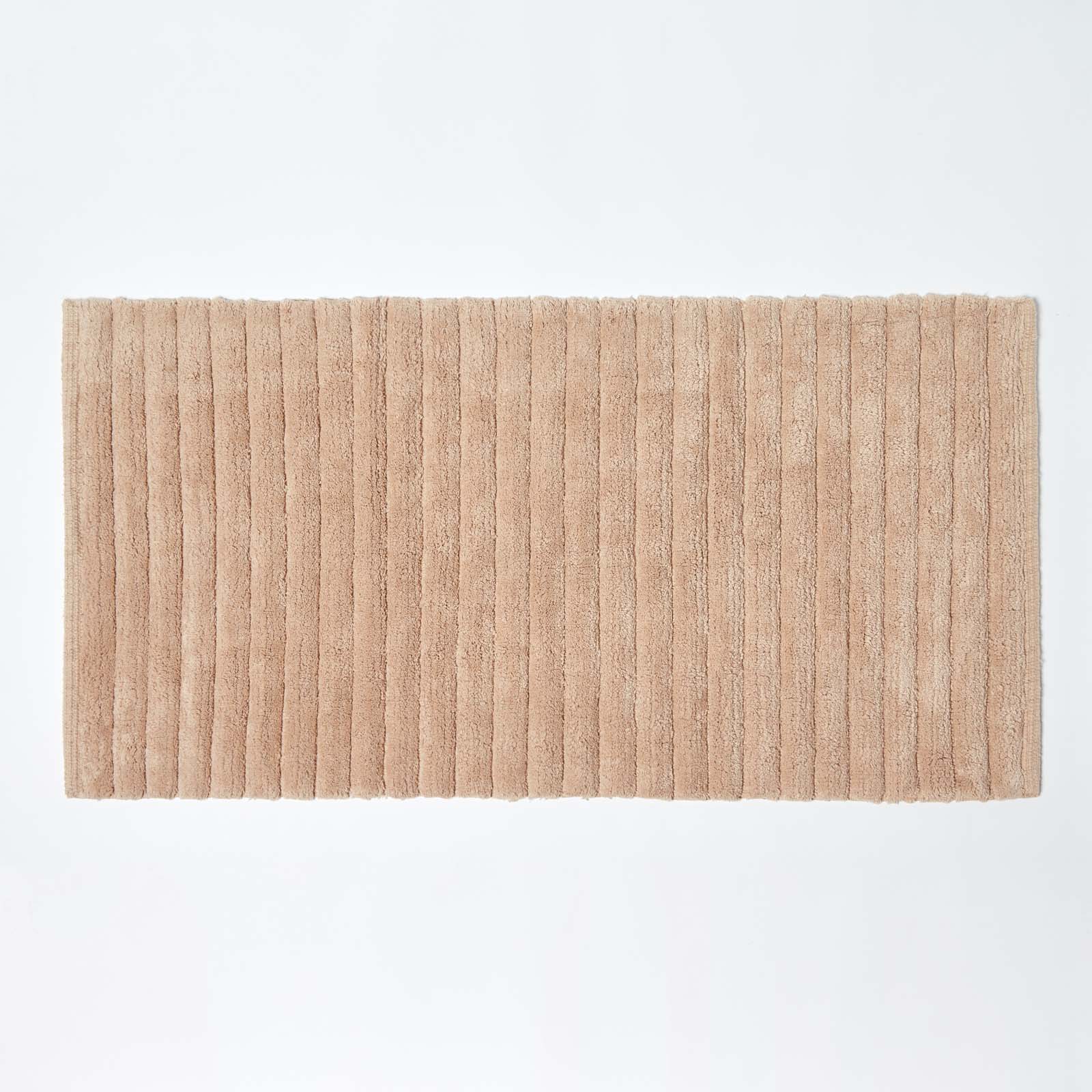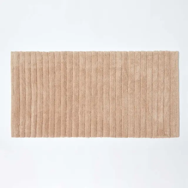 Ta kopalniška preproga Homescapes iz čistega bombaža prinaša udobje in slog v tvojo kopalnico. Moderni črtasti vzorec doda kopalnici sodoben videz. Izjemno mehak in puhast material nudi prijeten občutek pod nogami. Visoka vpojnost bombažnih vlaken skrbi, da so tla hitro suha.