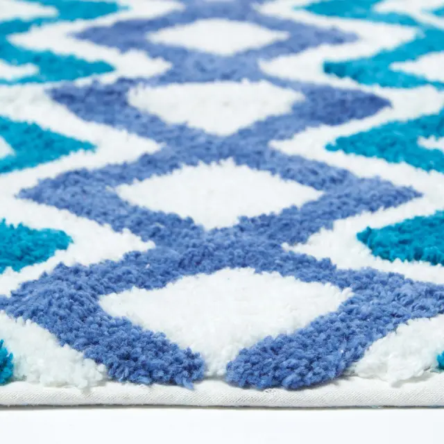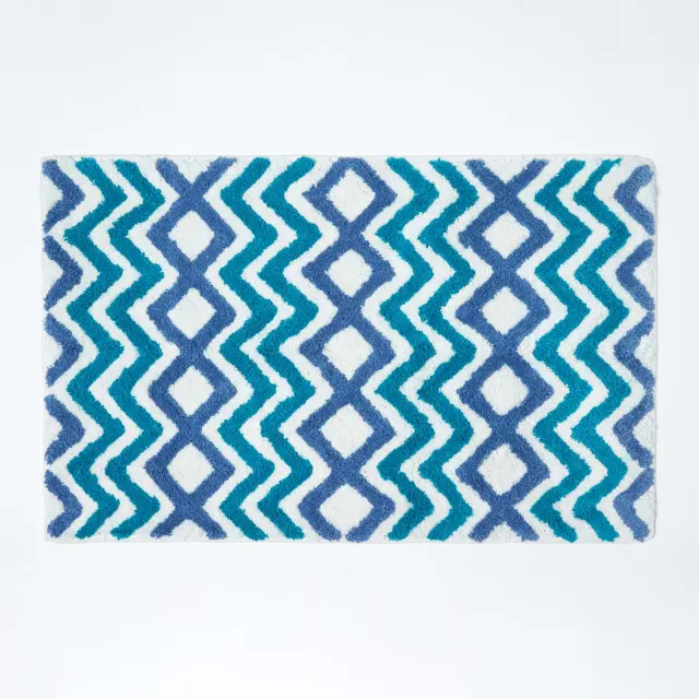 Homescapes kopalniška preproga cik-cak nedrseča 100% bombaž modra, 50 x 80 c