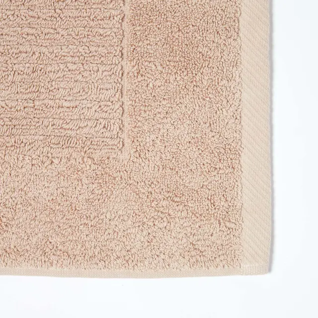 Ta kopalniška preproga Homescapes iz čistega bombaža prinaša udobje in slog v tvojo kopalnico. Visoka vpojnost bombažnih vlaken skrbi, da so tla hitro suha. Kakovostna izdelava blagovne znamke Homescapes zagotavlja dolgo obstojnost.