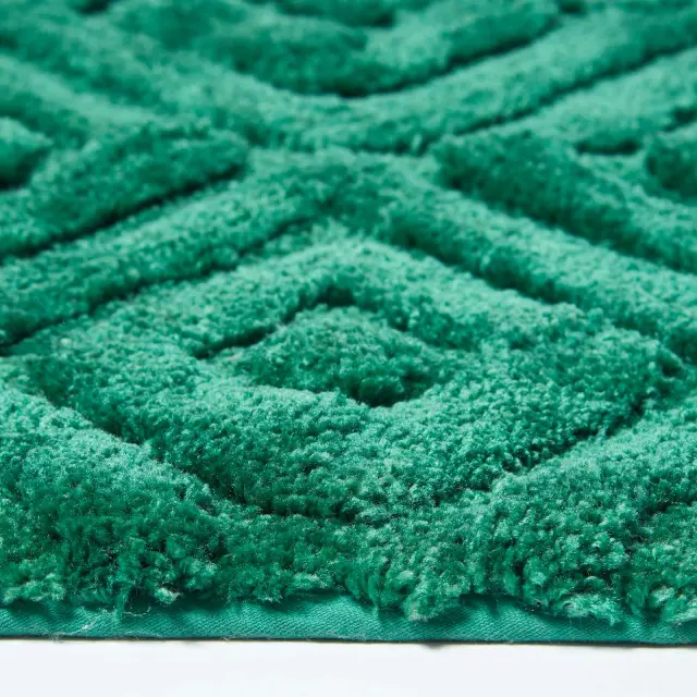Ta kopalniška preproga Homescapes iz čistega bombaža prinaša udobje in slog v tvojo kopalnico. Zaradi nedrseče podlage zagotavlja varen korak iz kadi ali pod prho. Odlikuje jo moden cik-cak vzorec, ki popestri prostor. Izjemno mehak in puhast material nudi prijeten občutek pod nogami. Visoka vpojnost bombažnih vlaken skrbi, da so tla hitro suha. Kakovostna izdelava blagovne znamke Homescapes zagotavlja dolgo obstojnost.
