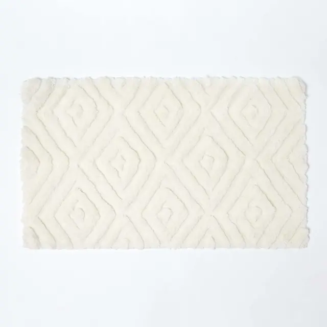 Homescapes kopalniška preproga nedrseča losanges 100% microfibre bela, 50 x 80 c