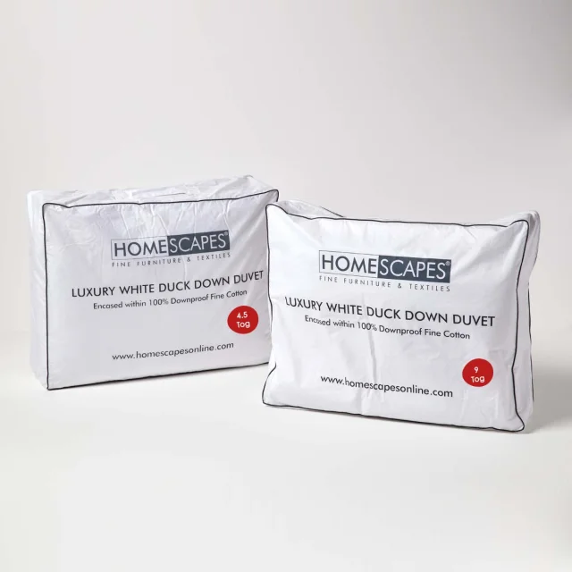 Da vam bo toplo vse leto, je luksuzna odeja Homescapes Luxury White Duck Down All Seasons Duvet na voljo v kompletu 2 odej za vsak letni čas. V tej odeji je vključena ena odeja 4,5 Tog ter ena toplejša odeja 9 Tog. Te odeje lahko nato povežete skupaj in tako ustvarite toplo in udobno odejo 13,5 Tog za zimo. Enostavno pritrditev: preprosto uporabite priložene plastične zaponke in obe odeji združite z diskretnimi luknjicami za gumbe vzdolž šiva. Račji puh, ki velja za luksuzno izbiro, je naravni izolator in se kot polnilo za odeje uporablja že več generacij. S to odejo dobite lahko odejo 4,5 Tog, ki je primerna za uporabo poleti, saj vas bo grela vso noč, ne da bi se pregreli. Odejica 9 Tog je zasnovana za uporabo v spomladanskih in jesenskih mesecih, vsaka odejica pa ima pregradno konstrukcijo, ki omogoča pretok zraka po celotni odeji, kar ohranja telesno temperaturo in preprečuje nastanek hladnih mest.