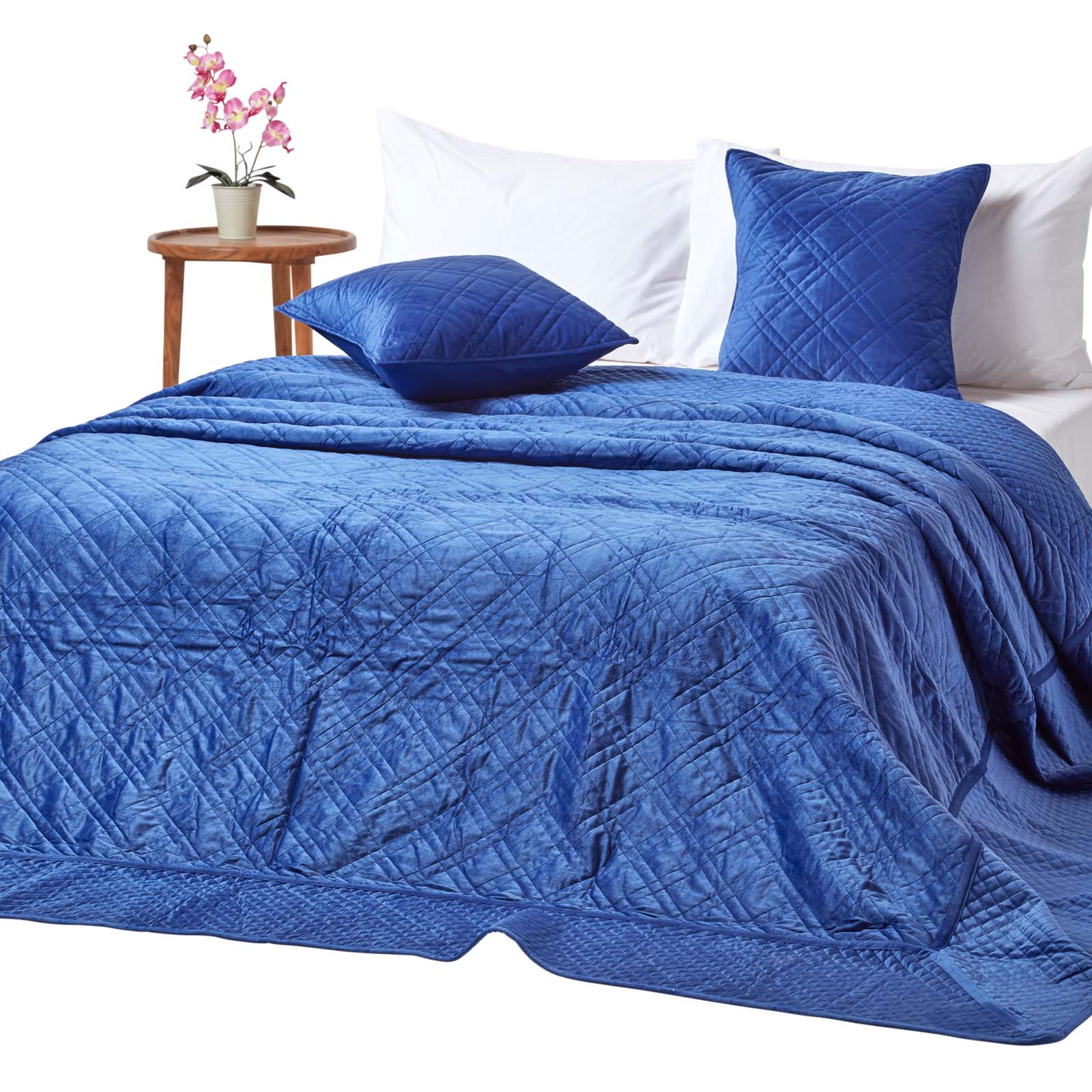 Homescapes luksuzna prešita žametna odeja z geometrijskim vzorcem ''Paragon Diamond'', 250x260 cm, mornarsko modra