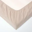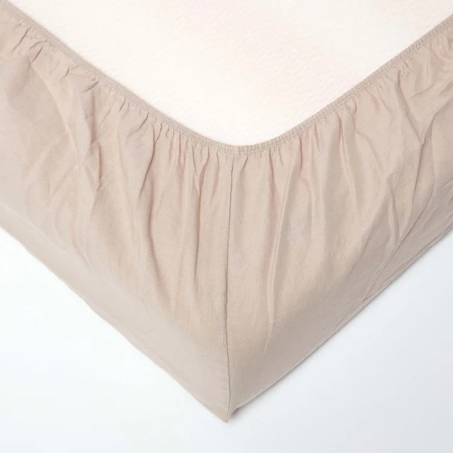 Luksuzna rjuha iz lanenega posteljnega programa Homescapes. Za najboljšo mehkobo je ta prilagojena rjuha izdelana iz edinstvene mešanice finih francoskih lanenih vlaken in premijske česanega bombaža, zaradi česar je še mehkejša kot čiste lanene rjuhe. Dodatek bombaža naredi to prilagojeno rjuho tudi izjemno trpežno, s vsakim pranjem pa bo postajala še mehkejša. Lan in bombaž imata naravne sposobnosti uravnavanja temperature, zato je to idealna lanena rjuha za spanje, saj lan vpija vlago in vas pusti, da se počutite hladne in sveže skozi celo noč. V naravni barvi bodo te lanene rjuhe dopolnjevale vsak notranji slog. Zelo sodobna barva, naš naravni laneni posteljni program bo ustvaril mirno spalno okolje v vaši spalnici.