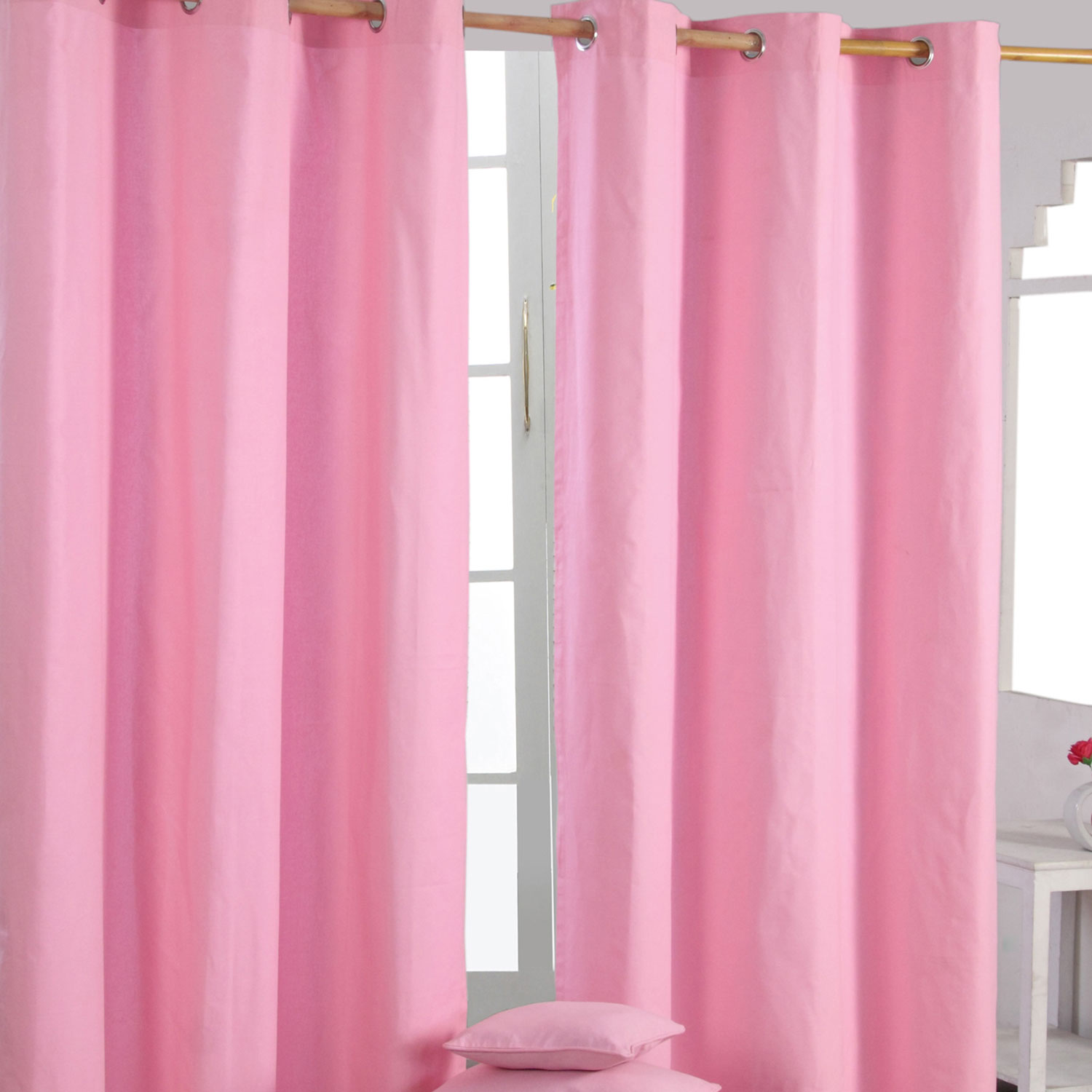 Homescapes navadne bombažne zavese roza barve 117x137 cm