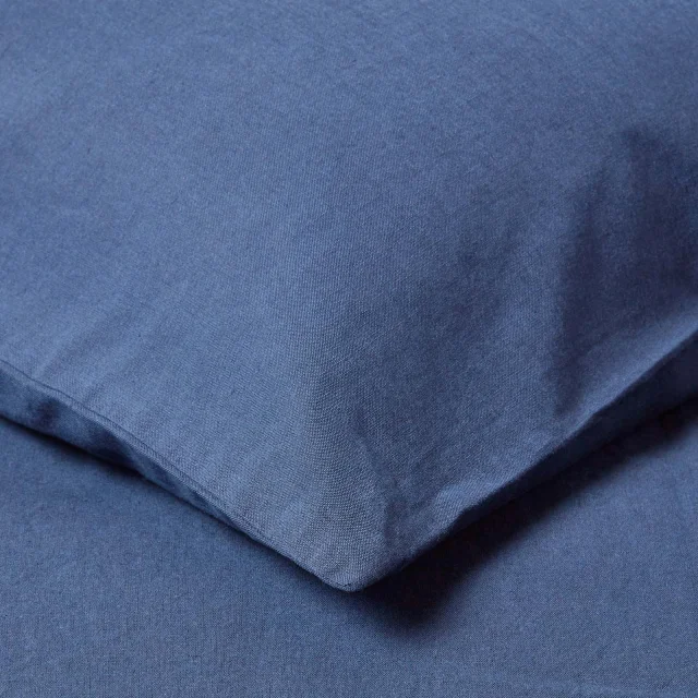 Oblikovana je za vzglavnike velikosti Euro Continental in je mehka na otip, nežna do kože in zračna. V klasični mornarsko modri barvi lahko v svoji spalnici ustvarite umirjen videz, ki je kot nalašč za mirno spalno okolje. Mornarsko modra je idealna za spolno nevtralne prostore, saj je videti odlično tako v moškem kot ženskem slogu spalnice. Platno daje tej posteljnini edinstveno kakovost videza džinsa za sodoben slog, ki ne bo nikoli videti zastarel. Mešajte in ujemajte z belo posteljnino in ustvarite navtično navdihnjen videz. Ta vzglavnik, ki pomaga uravnavati telesno temperaturo, da se boste vso noč počutili udobno, je bil stkan iz mešanice najboljšega francoskega lanu in vrhunskega česanega bombaža.