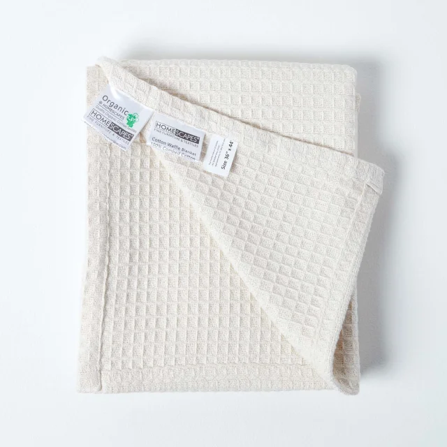 Homescapes Otroška odeja iz organskega bombaža z valovnicami, naravna, 90x112 cm