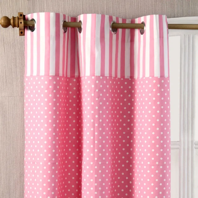 Homescapes Polka Dots Pink Ready Made Eyelet Curtain Par, 137x228 cm Drop