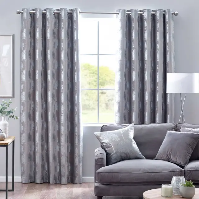 S tem kompletom zaves z vzorcem drevesa s srebrnim leskom ustvarite prefinjenost doma. Te zavese so lepo oblikovane in skrbno ročno tkane iz luksuzne tkanine v slogu šenilja z osupljivim svetlečim vzorcem drevesa za dodaten slog. Ta par zaves je pripravljen in v celoti podložen, zato so debele in težke, da preprečijo neželeno sončno svetlobo in poskrbijo za miren in nemoten spanec. Ne samo to, te zavese so odlične tudi za zmanjševanje prepiha v hladnejših mesecih, da ohranijo toploto in vam zagotovijo udobje. Ta komplet zaves je idealen za sodobne interierje, ki iščejo glamurozen dodatek za dnevno sobo ali spalnico, in bo zagotovo stilsko in ekskluzivno obrobil okna.