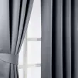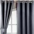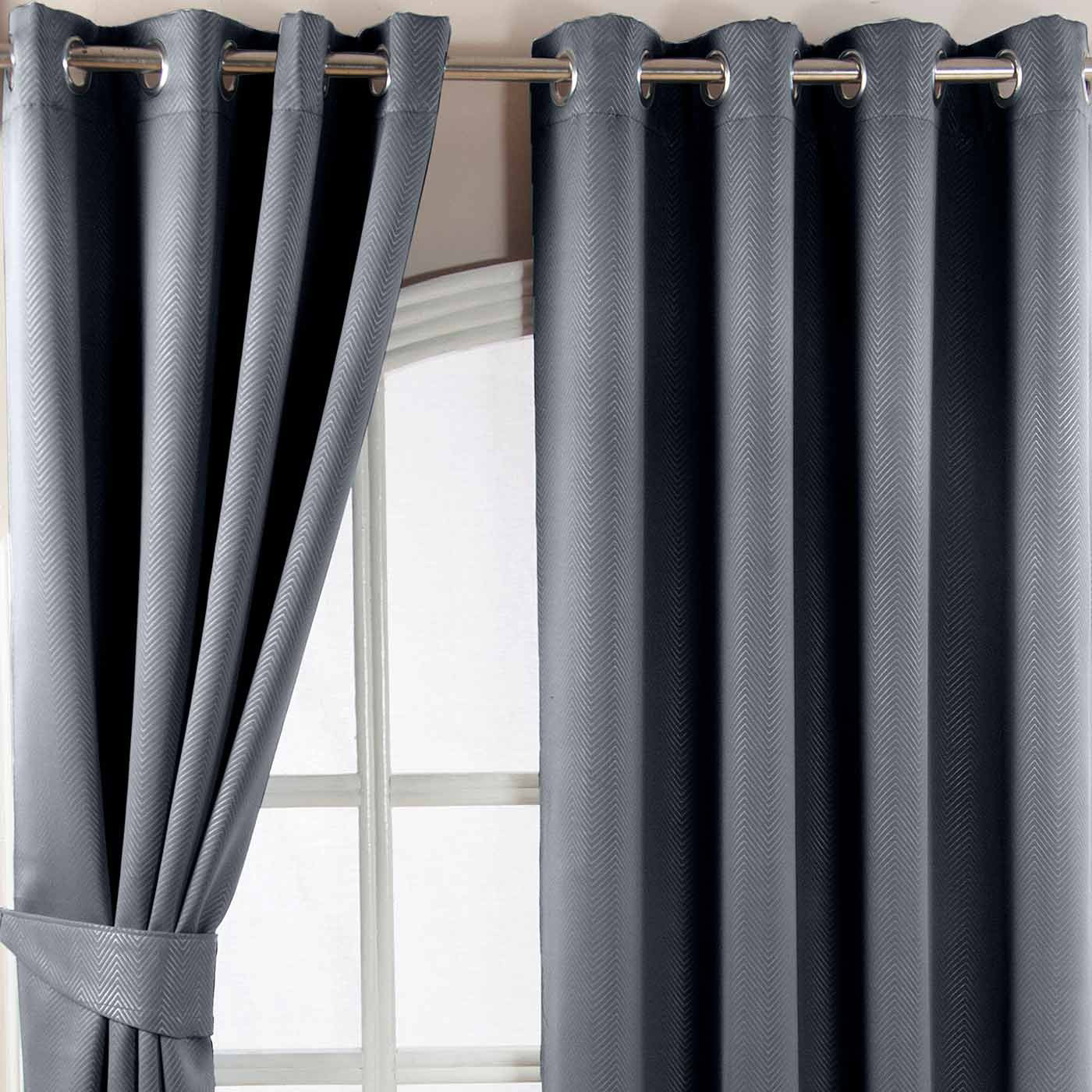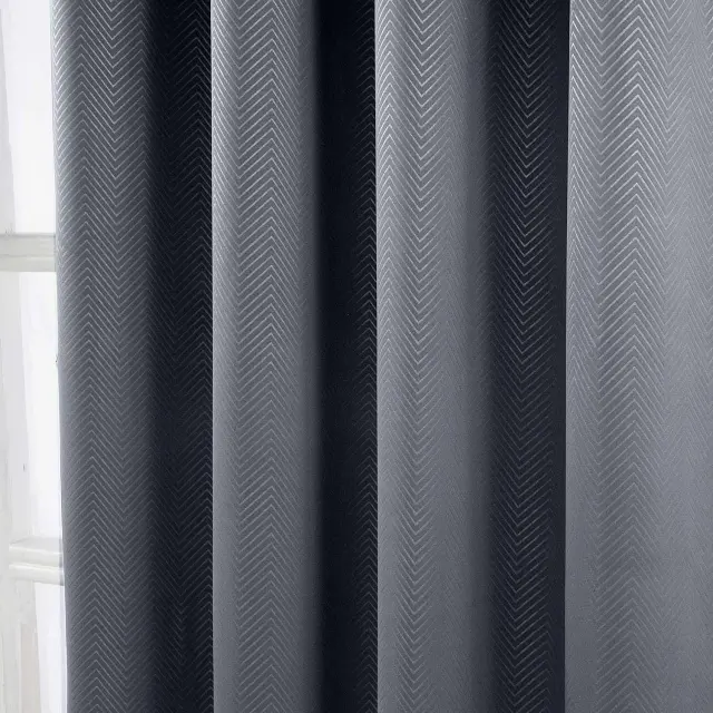 Par črnih zaves Homescapes' Ready-Made Embossed Herringbone Blackout Curtain Pair - Inovacija se sreča z dizajnom! Vprašajte Homescapes za brezplačne vzorce tkanin. Ta popolnoma nova serija termalnih zatemnitvenih zaves proizvajalca Homescapes ponuja prvovrstno kakovost in funkcionalnost v kombinaciji z eleganco in slogom. Izbirate lahko med eno največjih ponudb v Veliki Britaniji, ki obsega 9 različnih velikosti in 11 živahnih barv. Homescapesove zatemnitvene zavese so na voljo z obročastim ušescem ali svinčnikom. Ponudba vključuje 2 pripravljena zavesna panela iz 100-odstotnega poliestra. Plast za zatemnitev je skrbno vtkana v tkanino zaves, zato sta sprednja in zadnja stran zaves iz istega materiala in v isti barvi. Ta koncept je v Združenem kraljestvu povsem nov in ga spodbujajo najboljši svetovni oblikovalci in butiki.