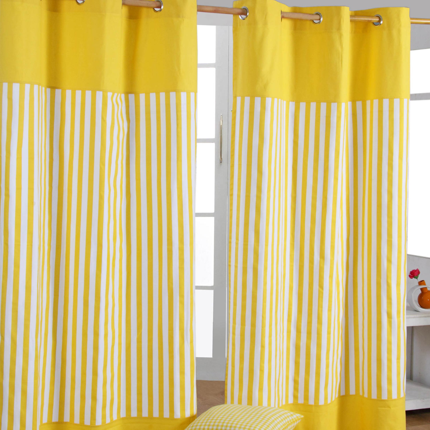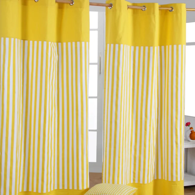 Homescapes Zavese z debelimi rumenimi črtami, pripravljene za uporabo, par Eyelet, 137x228 cm kapljice