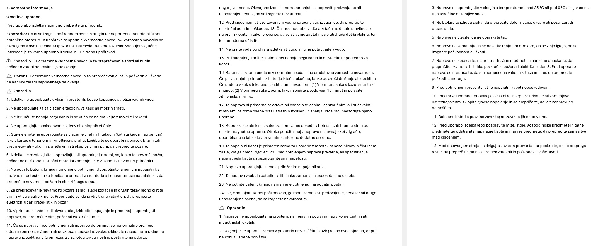 Slike o varnosti izdelka