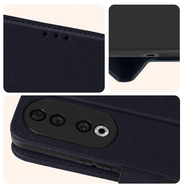 Honor 90 Wallet Video Case, serija Chesterfield - polnocno modra
