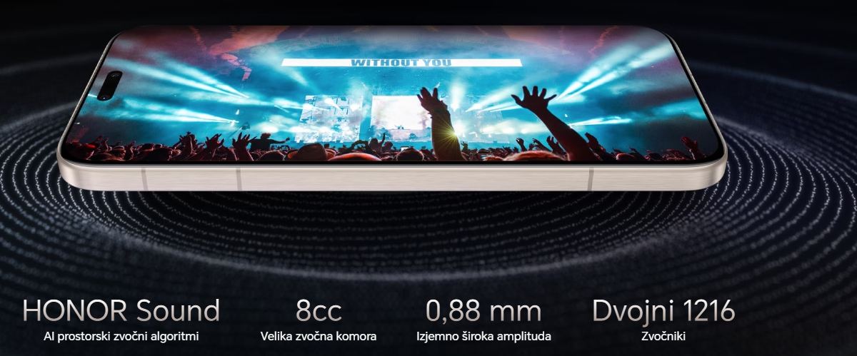 Industrijsko vodilna tehnologija z dvojnima odprtima komorama in veliko 8cc zvočno komoro ter izjemno široko amplitudo 0,88 mm. HONOR SOUND AI algoritmi za prostorski zvok brez napora izboljšajo bas in prostorski zvočni efekt na povsem novo raven ter ustvarijo še bolj poglobljeno zvočno izkušnjo.