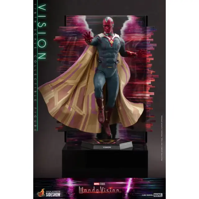 Skrbno izdelana na podlagi Visionovega videza na platnu v seriji WandaVision, figura Vision ima impresivno skulpturo glave in Mind Stone z osupljivimi podrobnostmi, ki odražajo mehanske lastnosti androida, zelo prilagodljivo specializirano telo, spretno ukrojeno obleko s priloženo pelerino, več zamenljivih rok, posebej oblikovano stojalo za figuro in ozadje s tematiko Hex za poustvarjanje prizora.