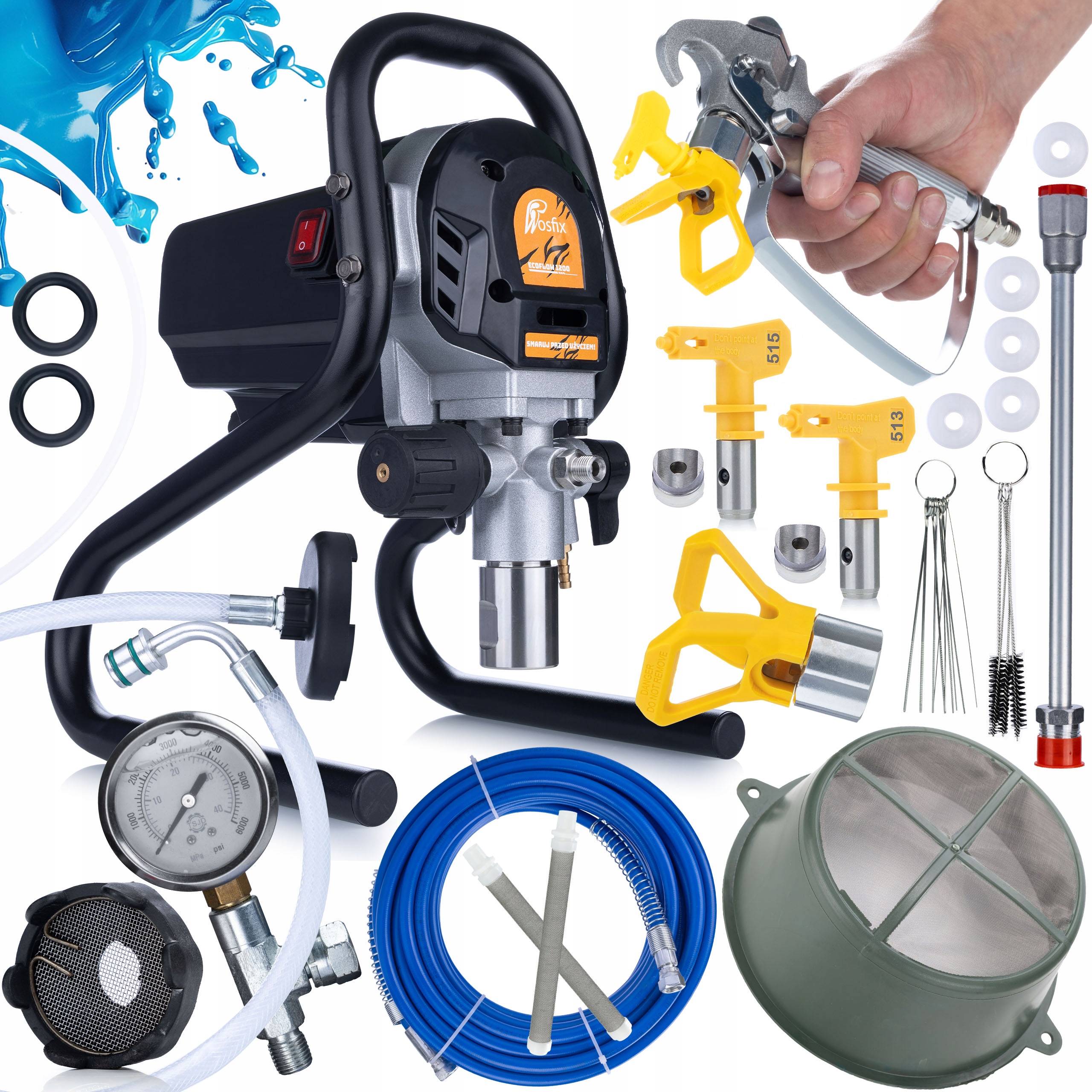 ✅ Barvna pištola z zaščitnim pokrovom in šobami 515 ter 513 je visokokakovostno orodje, zasnovano posebej za delovanje z agregatom Rosfix EcoFlow 1200. Izdelana je iz trajnih in trdnih materialov, kar zagotavlja zanesljivost in dolgo življenjsko dobo.