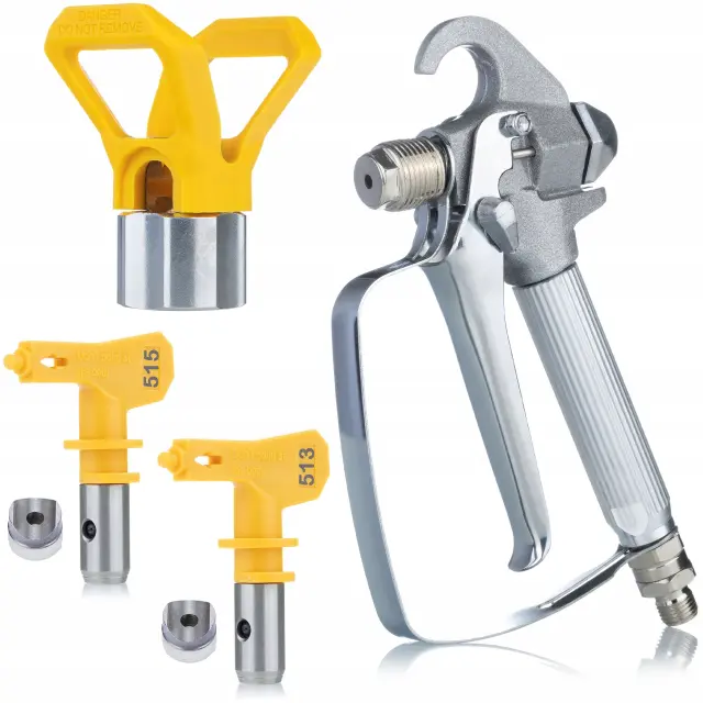 ✅ Univerzalne šobe: Brizgalna pištola, priložena kompletu, je združljiva s široko paleto šob, ki so na voljo na trgu, kar omogoča prilagodljivost in prilagajanje različnim barvnim nalogam. V kompletu je šoba 515, idealna za nanašanje emulzijskih in lateksnih barv, ki zagotavlja odlično pokritost in učinkovitost.