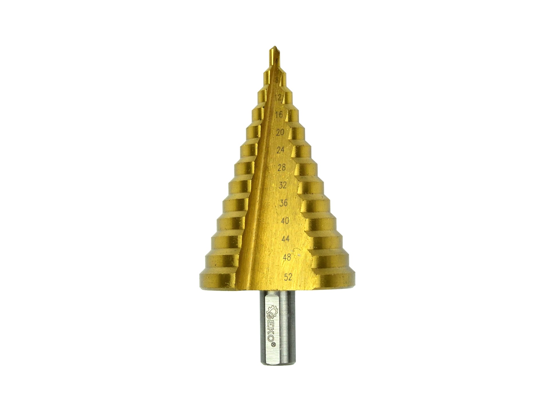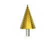 Stopničasti sveder HSS TiN s premerom vrtanja od 4 do 52 mm . Zasnovan za vrtanje v neželezne kovine, jekleno pločevino in plastiko.